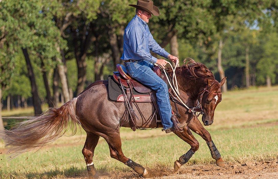If the horse chooses to trot or lope, and most will at first, let him. He’ll soon realize that he’s just rushing to hard work.
