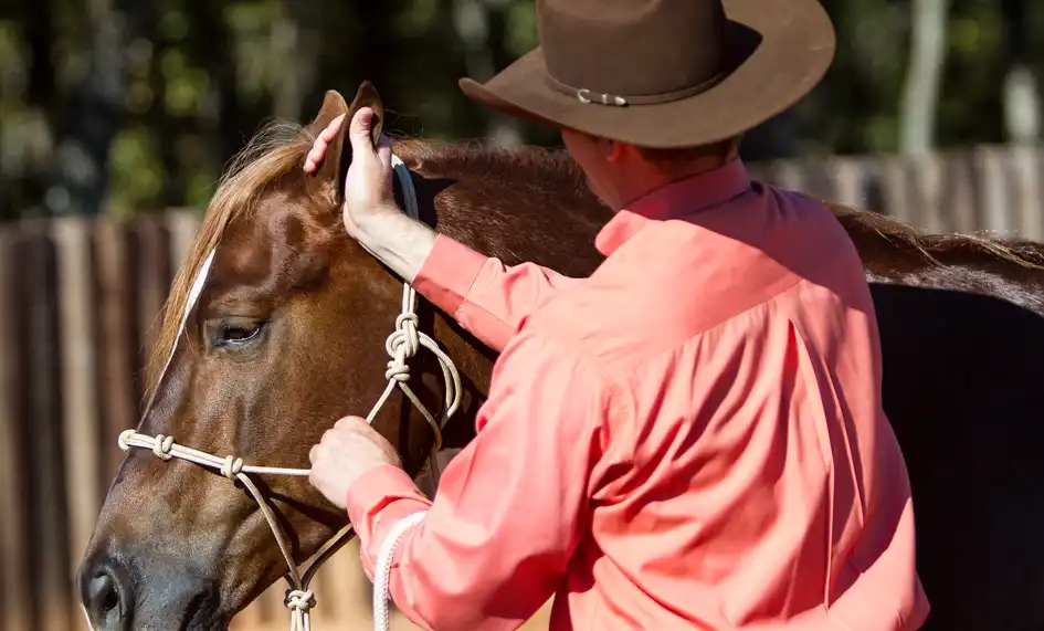 Start by just rubbing the inside tip of his ear and use Approach and Retreat to gradually work your way down to the inside base of his ear. Establish a starting point and then build on it. Don’t go from touching the outside of the horse’s ear to trying to rub your thumb inside the entire length of his ear. Start with just the tip and then work your way up to being able to touch the inside of his entire ear.