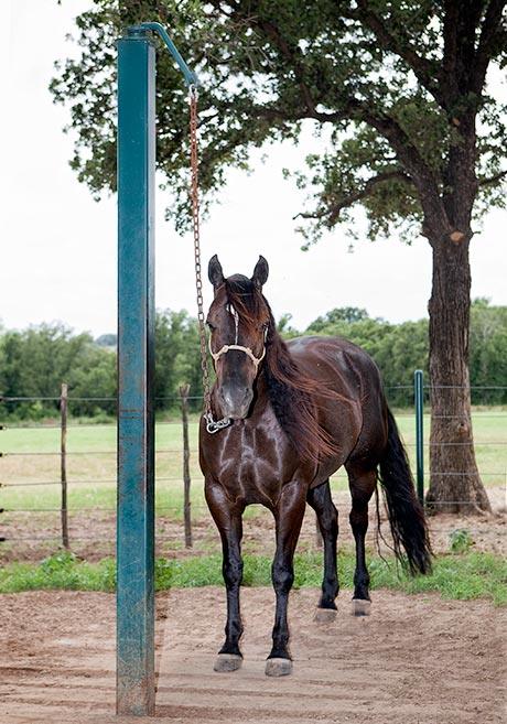 Some people will read that and think that I’m being cruel to the horse. But I have to ask, “What’s the difference between a horse standing still in a stall or a horse standing still on a Patience Pole? The difference to me is that if he’s standing tied to a pole, he could be thinking about you and what you’ve just taught him, but I guarantee you that in the stall he’s not thinking about you at all. (Yes, I know that statement just broke a few hearts.)