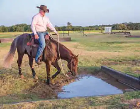 Introducing a horse to water after a training session, when he’s hot and thirsty, will make the water more inviting to him.