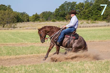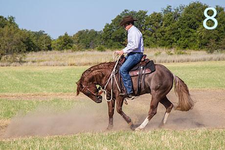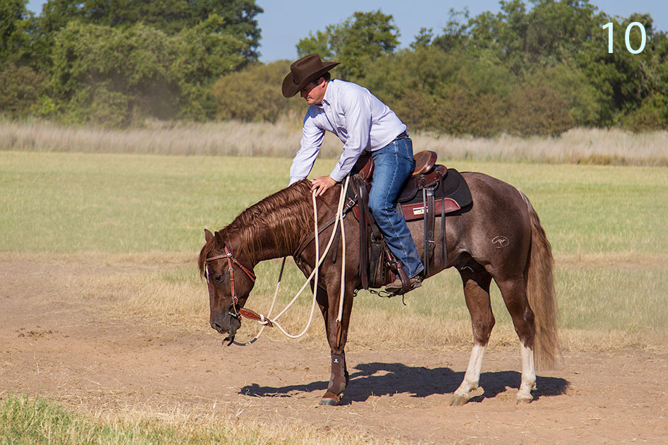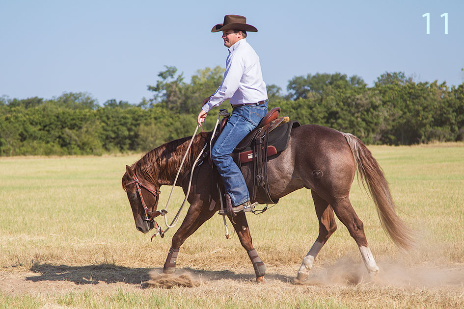10. We generally practice two rounds of this exercise every day for a week or so, spending 10 minutes on each session. The only way your horse will get good at loping is if you put some steady miles under his feet. Likewise, the only way he’ll get comfortable being ridden in traffic is if you practice riding him in traffic.
