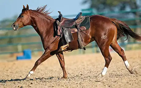 I would say that 50 percent of horses will buck with the saddle and 50 percent won’t. The first time I saddle a horse, he’s allowed to buck. As soon as I get the saddle on him, I’ll just get him going around and let him just get used to wearing the saddle. A lot of horses will stand calmly while you do up the cinches, but once they start moving and feel the cinch around their girth area, they come unglued. If the colt is going to buck, I want him to buck as hard as he possibly can to try to get the saddle off his back. He needs to realize that he can buck as hard as he wants, but he’s not going to get rid of the saddle or the pressure around his girth.