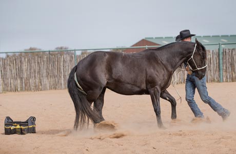 Keep in mind that you may have to chip away at the issue a little each day if he is especially worried. For example, if the horse doesn’t like you touching his flank, you’ll first establish a starting point—an area where he is comfortable with you touching. In this example, that might be on his back. Once you’ve established a starting point, then you can use the Approach and Retreat Method to gradually work your hand down his side to his flank. But you don’t want to go straight from his back to his flank; you first have to build his confidence and trust. Maybe in the first session you’ll only make it halfway down the horse’s side before he becomes uncomfortable and resists you. That’s OK. As long as you’re making progress and increasing the horse’s comfort level, you’re doing your job. It may be the third or fourth session before you can rub his flank while he stands still and relaxes. That’s perfectly fine.