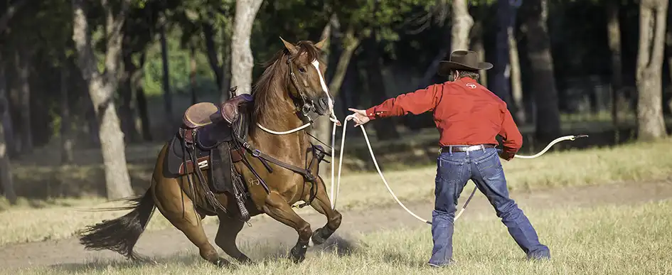 The top three reasons why horses jig are: 1) he’s fresh and full of pent up energy, 2) he’s barn sour and trying to get home faster, and 3) he’s trying to get to the front of a group. If your horse is jigging because he’s fresh, it means you did a poor job of preparing him for the trail ride. You should have knocked his pent up energy out of him with groundwork exercises like Lunging for Respect Stage Two. Keep something in mind, it’s unfair to not ride your horse all week and then pull him out of his stall on Saturday, throw the saddle on him and think you can ride off down the trail like John Wayne. Horses require maintenance.